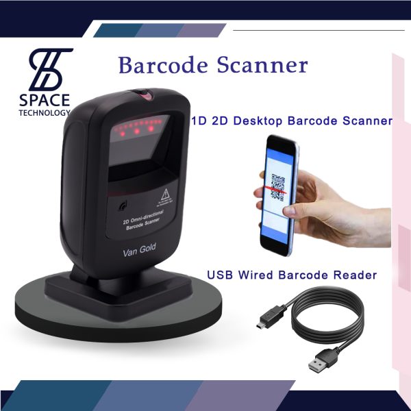 1D 2D Desktop Barcode Scanner, Omnidirectional Hands-Free USB Wired Barcode Reader, Capture Barcodes from Mobile Phone Screen, Automatic Image Sensing for Supermarket Library Retail Store